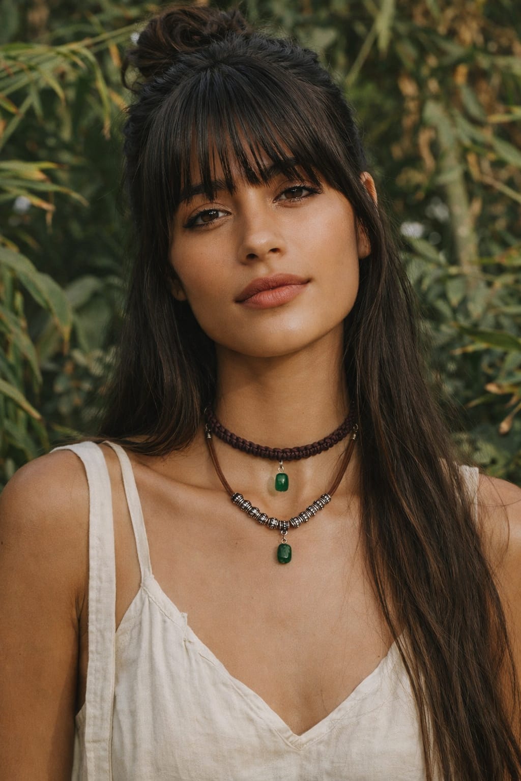 Choker artesanal de estilo boho, confeccionada com trançado delicado e detalhes em metal envelhecido. A peça é finalizada com pedra verde natural, trazendo um toque de autenticidade e conexão com a natureza. Leve, versátil e cheia de personalidade — perfeita para quem busca um acessório com significado e estilo atemporal.