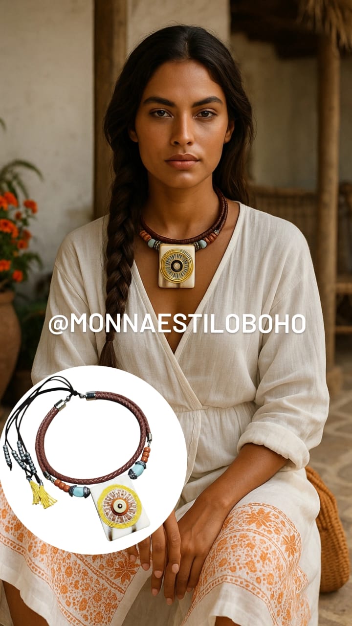 Descubra o charme único deste colar artesanal boho, cuidadosamente confeccionado à mão com couro legítimo e contas coloridas que trazem vida e personalidade ao acessório. O destaque fica por conta do elegante pingente quadrado com detalhe central, perfeito para compor looks boho, adicionar um toque sofisticado e expressar sua autenticidade. O colar possui comprimento ajustável.